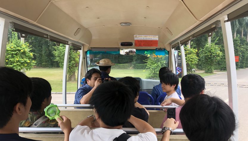ゼミ旅行6日目はまずハノイから1時間ほどの場所にある滞在型リゾート「フラミンゴ・ダイライ・リゾート」を訪れました。ここでは主に建築家のヴォチョンギア氏が設計した竹の建築を見学しました。Conference Hallは竹の梁によって構成された大空間と地元で採れる安価な石を用いた壁が印象的でした。