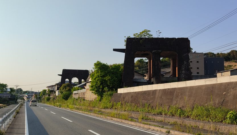 その後、飯塚市に移動し、市内の住宅地に残る遺構の見学をしました。これらは当時の状態をそのまま残してあり、住宅地の中に取り残されたような形で保存されていました。